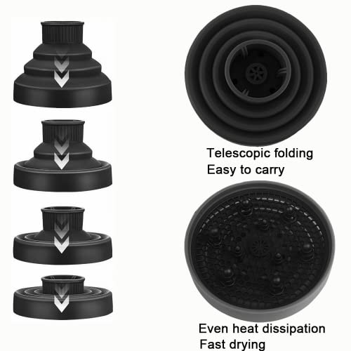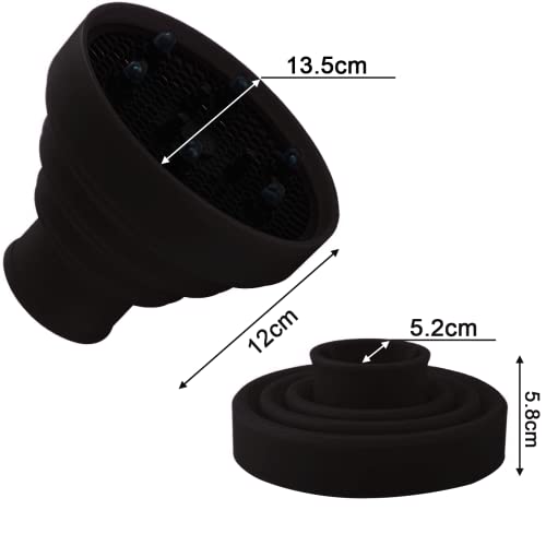 YUNAI Diffusore per Asciugacapelli in Silicone Pieghevole, Diffusore per Asciugacapelli Facile da Conservare per la Protezione dei Capelli e da Viaggio,Adatto a Diametro dell'ugello da 4cm a 5cm(Nero)