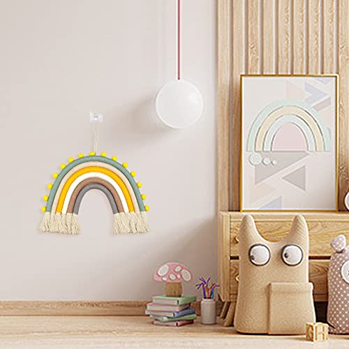 YunBey Appeso a Parete Arcobaleno, Macrame Arcobaleno Decorazioni da Parete, Intrecciato a Mano Art Arcobaleno da Appendere per Soggiorno, Cameretta, Parete