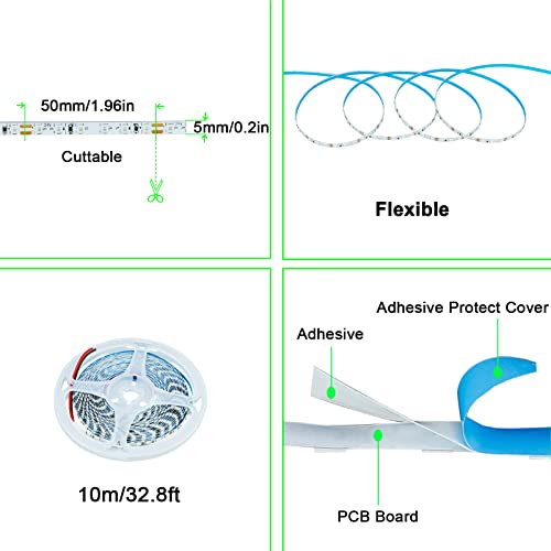 【1200 LED e alta luminosità】perline LED SMD2835 ad alta densità da 1200 LED, più delle normali strisce LED (300 LED). Maggiore efficienza luminosa e luminosità rispetto alla normale striscia luminosa SMD 2835.