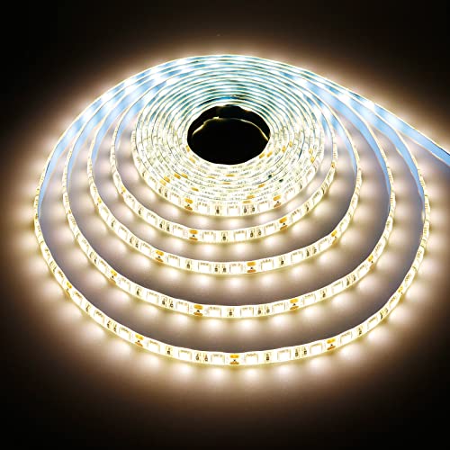 YUNBO Striscia LED Bianco Caldo 3000-3500K, 5M 24V SMD 5050 300LED Flessibile Tagliabile IP65 Impermeabile Luci a LED per Casa Camera Cucina