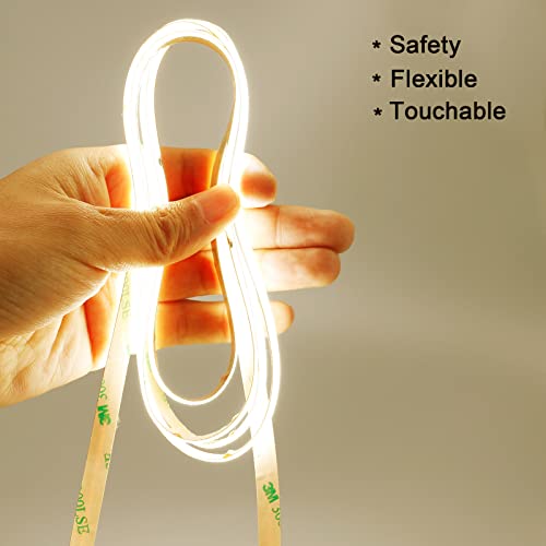 【Emissione di luce uniforme】La tecnologia COB consente una densità di imballaggio molto più elevata dell'array di LED, assenza di punti scuri, maggiore efficienza luminosa, CRI più elevato (90+). La striscia LED COB emette in modo uniforme e morbido, senza raggi ultravioletti, ed è comoda e morbida. (Senza alimentazione)