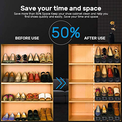 YUNDOO Scarpiera Salvaspazio, 10pezzi Creativo Regolabile Organizer Scarpe Durevole Salvaspazio Scarpe Shoe Organizer Nero Regalo Spazzola per Scarpe e Panno di Fibra (nero-10 PCS) (Nero)