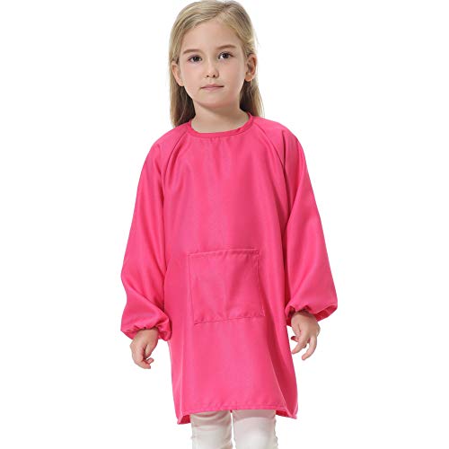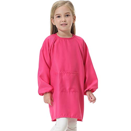 Yundxi - Grembiule per bambini, a maniche lunghe, per scuola, scuola, scuola, casa e cucina, colore: rosso rosa