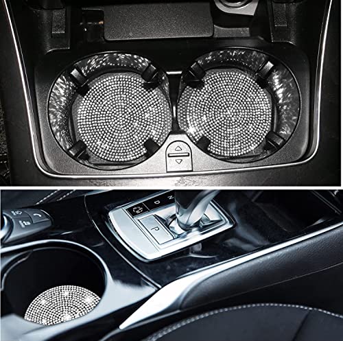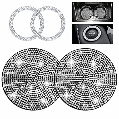 Yungeln 2 Pezzi Universali Bling Sottobicchieri per Auto con Pulsante di Avviamento Auto Anello di Strass Emblema Adesivo Universale Antiscivolo Portabicchieri in Silicone Inserto Strass di Cristallo