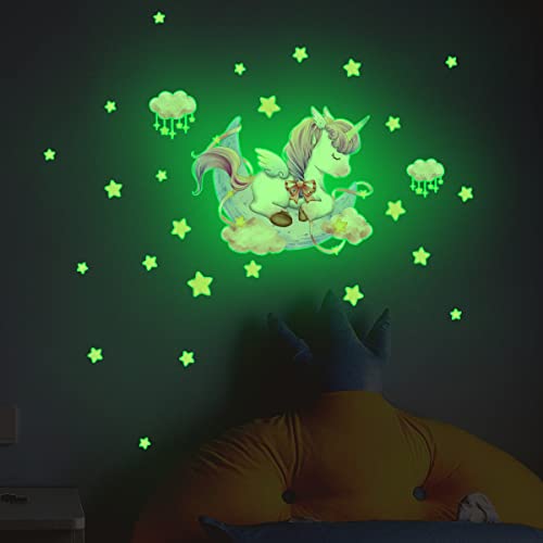 Yunkctuk Stella luminosa, autoadesiva, con unicorno, per cameretta dei bambini, con unicorno, per ragazze, idea regalo per ragazze, cielo stellato, decorazione per la cameretta dei bambini