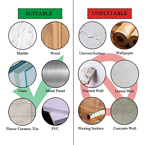 Facile da installare: Basta attaccare l'adesivo più largo e più spesso sulla parete per ottenere un'installazione stabile. Si consiglia di attaccare gli adesivi su una superficie liscia, piana ed asciutta.