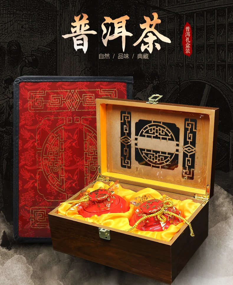 Yunnan Pu'er Tea Compressed Mini Puer Tea Cooked Tea Ceramic Solid Wood Gift Set Tea