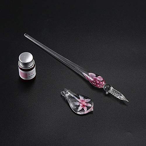 YUnnuopromi - Penna in Vetro con Inchiostro in Finto Cristallo, a Forma di Fiore, Ideale Come Regalo, Colore: Rosa