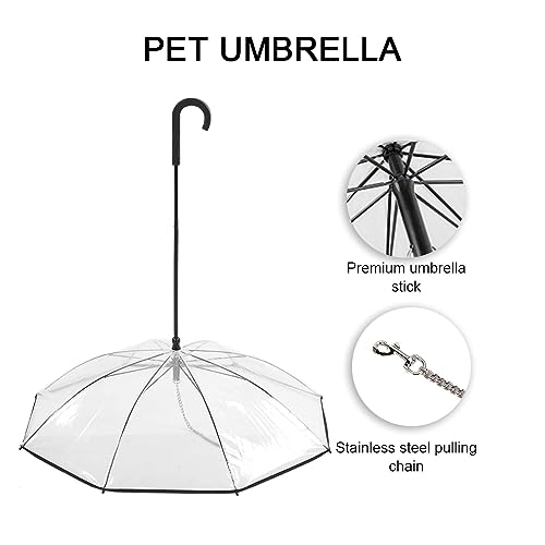 Yunseity Ombrello Trasparente al Guinzaglio per Animali Domestici, Ombrello Pieghevole Portatile per Animali Domestici, Piccolo per Esterni Piovosi (Trasparente)