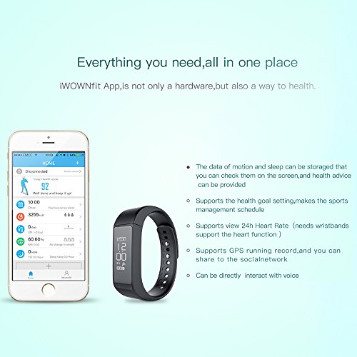 YUNTAB touch screen I5PLUS sports blacelet Fitness Tracker Funzione principale: chiamata notifiction, Messaggio / QQ / Twitter promemoria, funzione Sport standard (passi, calorie di distanza), esposizione di tempo, Sleep rilevare, Shake fotografia, ricordo Anti-perso, orologio intelligente di allarme, smart sbloccare, informazioni sportive condivisione.