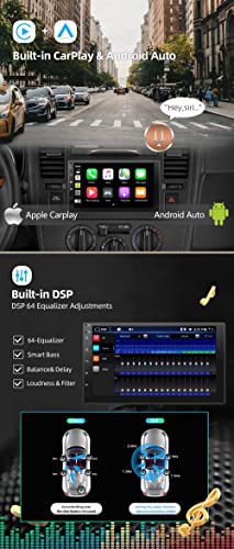 【Integrato CarPlay-Android Auto-DSP】Apple CarPlay e Android Auto integrati. Consentono agli utenti di effettuare chiamate da Siri e ascoltare musica. con DSP integrato e amplificatore TDA7851 con 4 x 50 W. L'equalizzatore a 64 bande si adatta ai tuoi gusti e ha una qualità del suono superiore, 2 REGALI GRATUITI: ① Fotocamera posteriore a 4 LED, risolve il problema della visione ostruita di notte, ② microfono esterno, goditi una comunicazione più chiara in auto