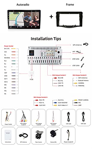 【Contenuto della confezione】 1 x presa di alimentazione / 1 x cavo di uscita RCA A / 1 x cavo di uscita RCA B / 1 x cavo di uscita RCA C / 1 x cavo di uscita RCA D / 1 x antenna GPS / 1 x cavo USB / 1 x doppio cavo USB / 1 x antenna radio / 1 x telecamera posteriore / 1 x microfono esterno / 1 x autoradio / 1 x manuale utente