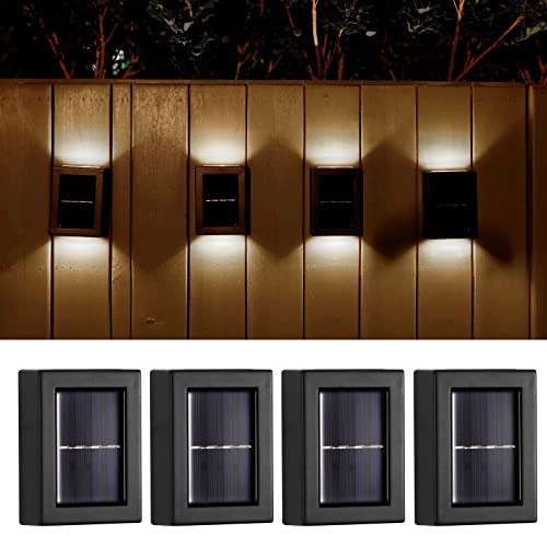 YUNYODA Applique Solare Da Esterno,4 Pezzi Lampade Solari da Giardino, Applique da Parete Solare Decorativa Impermeabile IP65,per Recinzione da Giardino Allaperto Veranda Passo