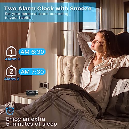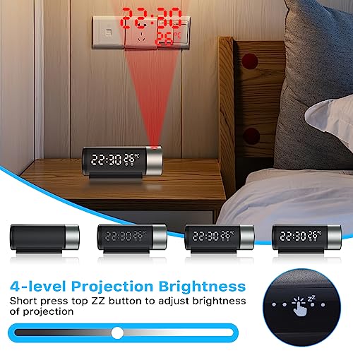 YUNYODA Sveglia con Proiettore, Sveglia Digitale da Comodino,Sveglia con Proiettore a Rotazione 180°,Orologio Digitale con Doppio Allarme, Snooze,12/24h,Temperatura&Umidità, per Ufficio Casa
