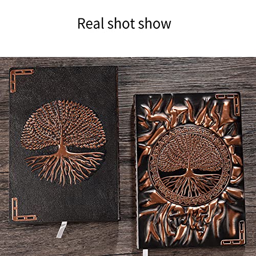 YUNYODA Taccuino in pelle vintage, formato A5, 100 pagine diario di viaggio, blocco note 3D goffrato, diario, albero della vita, taccuino per ufficio scolastico, Natale, regalo di compleanno