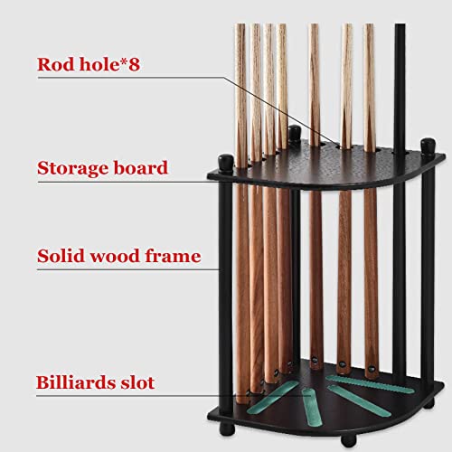 Yunyun 8 Fori Portatile in Legno Massello Porta Stecche Biliardo,Facile da Montare A Forma di Ventaglio Porta Stecche Biliardo per Interni,Accessori Biliardo Sala O Club (36x36x53 Cm)