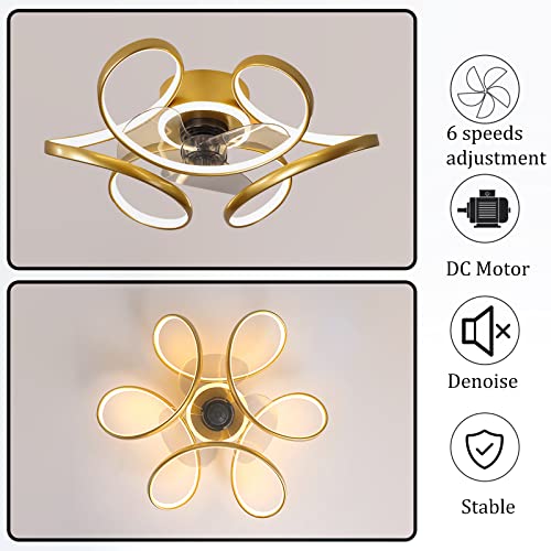 YUNZI Ventilatore da Soffitto con Luce E Telecomando Silenzioso Lampada con Pale Ventilatore 6 velocità del Vento Regolabile Plafoniera LED Dimmerabile per Cucina Camera da Letto Bambini-Black