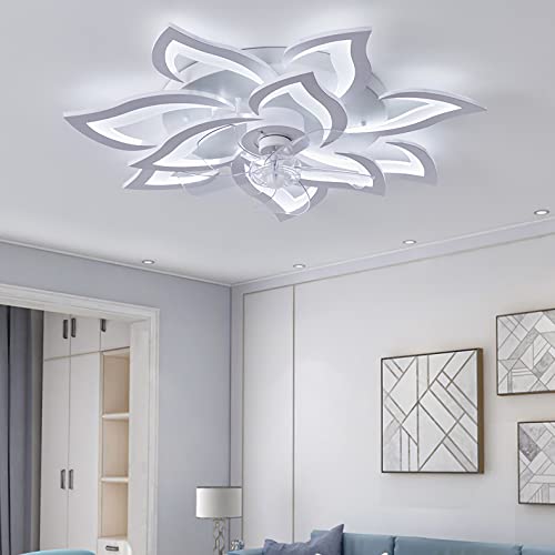 YUNZI Ventilatore da Soffitto Silenzioso con Telecomando E Ventilatore da Soffitto Regolabile A velocità del Vento APP6 Design Camera da Letto Soggiorno Grande Lampadario A Forma di Fiore-White||D