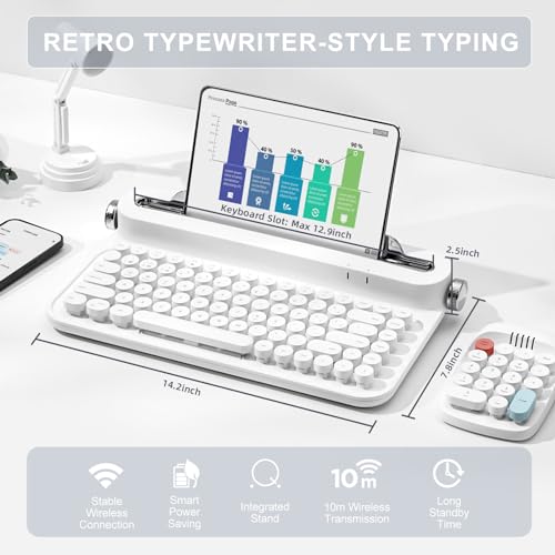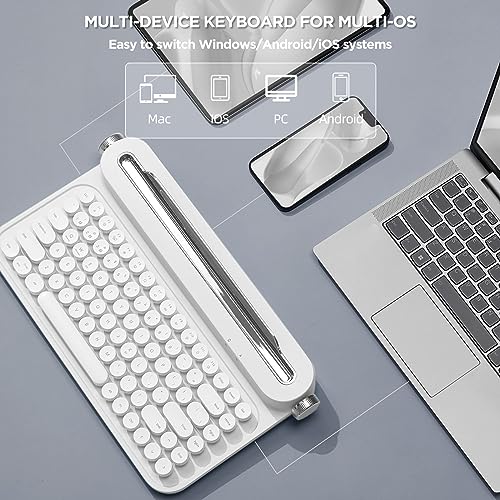 YUNZII ACTTO B305 - Tastiera wireless per macchina da scrivere, stile retrò, Bluetooth, con supporto integrato, per multi-dispositivo (B305, bianco neve)