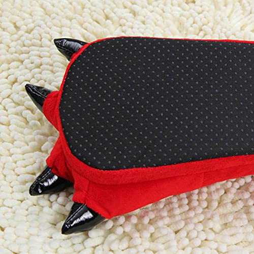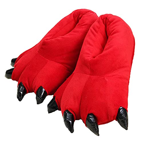 YUNZLAN Pantofole con zampa di animale peloso per bambini e adulti, Pantofole con zampe di zampa morbida unisex invernali Scarpe con zampa di animale in peluche,M,red