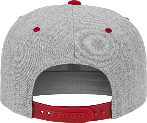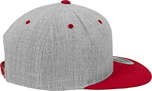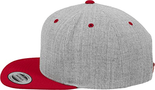 Yupoong Flexfit Unisex Kappe Classic Snapback 2-Tone, zweifarbige blanko Cap mit geradem Schirm, One Size Einheitsgröße für Männer und Frauen, Farbe heather/red