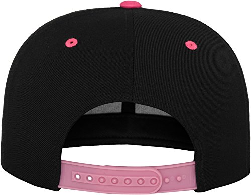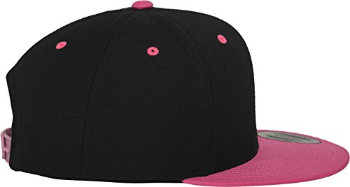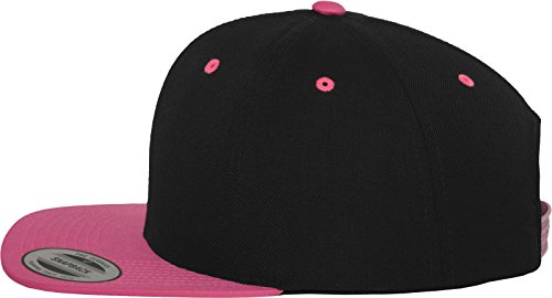 Yupoong Flexfit Unisex Kappe Classic Snapback 2-Tone, zweifarbige blanko Cap mit geradem Schirm, One Size Einheitsgröße für Männer und Frauen, Farbe blk/neonpink