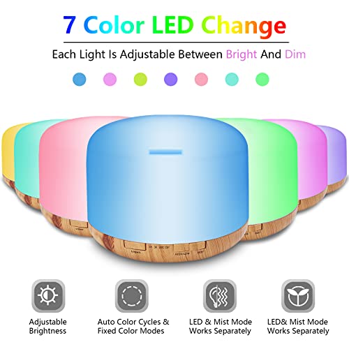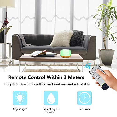 Yuragim Diffusore di Oli Essenziali, 500ML Umidificatore Ad Ultrasuoni Diffusore di Aromi con Telecomando 7 Colori LED Umidificatore Ambiente per Ambienti Soggiorno Camera da Letto Bambino Spa Ufficio
