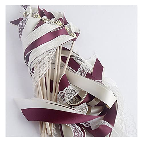 Yurosiay 50 campanelle da parete per matrimonio, con nastro di raso colorato, in pizzo bianco, stelle filanti per matrimoni, fate, bastoncini di seta, per matrimoni, feste, viola scuro