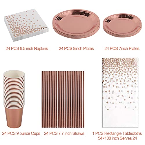 ♥stoviglie per feste in oro rosa per 24 persone♥ 1 tovaglia carta (54 x 108 Zoll), 24 piatti carta da 9 pollici, 24 piatti carta da 7 pollici, 24 bicchieri carta da 9 once, 24 cannucce, 24 tovaglioli