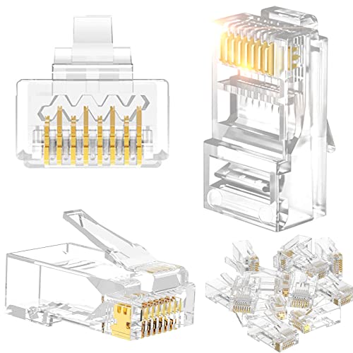 YUSHI 100 Pezzi Connettori RJ45, Connettori Cat6,per Cat6/Cat5/Cat5e, Connettori Ethernet RJ45, Plug RJ45,Spina terminale di rete placcata oro Ethernet