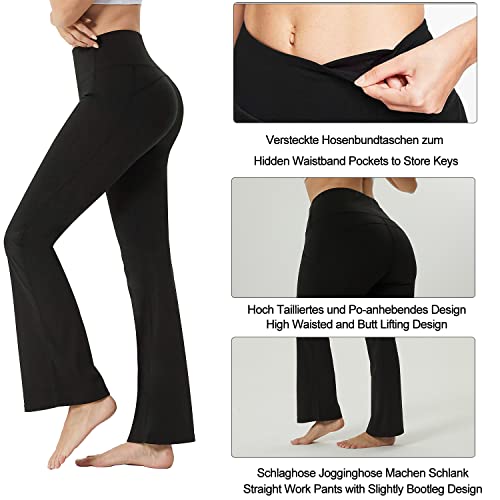 YUSHOW Pantaloni Donna Yoga Bootcut Vita Alta Pantaloni a Zampa Sportivi Yoga Pilates Flare Pants Larghi Fitness Allenamento con Tasche