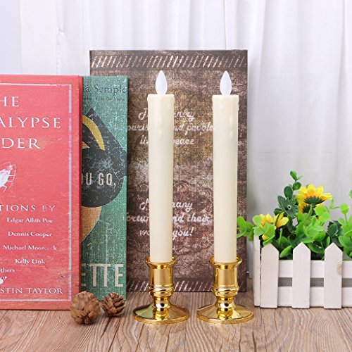 Yushu, 2 candele elettriche tremolanti senza fiamma, con base dorata rimovibile senza fiamma, a batteria, con fiamma tremolante (batterie non incluse)