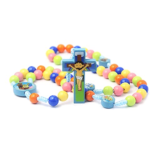 Yushu - Collana con ciondolo a croce, cartone animato Gesù Cristo Crocifisso, Rosario perline collane cattoliche, bambini bambini bambini ragazze regalo collana, gioielli religiosi di moda