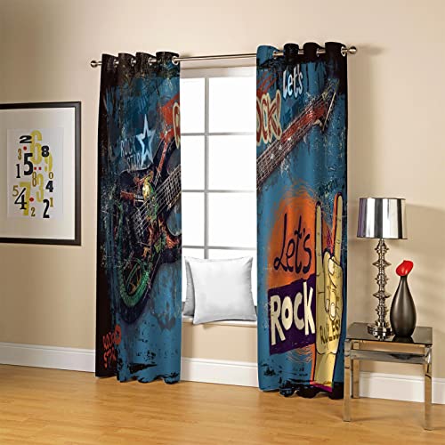 YUSHUO Tenda Finestra Oscurante Bambini Chitarra Musicale D'Epoca Con Occhielli 234X230Cm 2 Pannelli Tende Oscuranti Finestra Per Interni Camera Da Letto Soggiorno Tende Cucina Termica Isolante