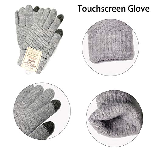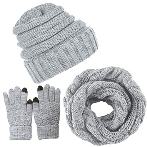 Yutdeng Cappello Loop Sciarpa Guanti Touch Screen Set Donna Berretto a Maglia Invernali Caldo Unisex Fodera in Pile Beanie Collo della Ciarpa Guanti Regalo Sport Sci All'aperto Grigio Chiaro