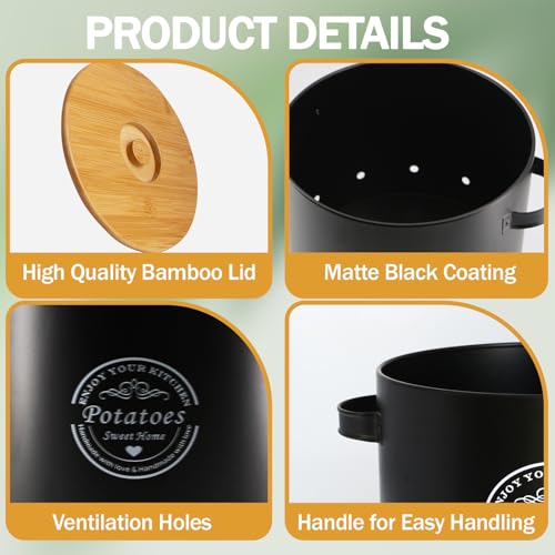 Set versatile di pentole per patate: barattoli per patate, barattoli per alimenti alla moda realizzati in metallo verniciato nero per alimenti, dal design nostalgico, creano ordine in cucina e nella dispensa e diventano un punto culminante visivo nella tua cucina, il miglior regalo per la famiglia e gli amici.Non solo puoi