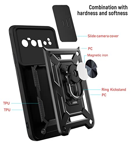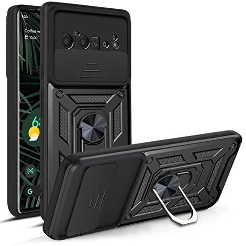 Yutwo Cover Compatibile con Google Pixel 6 Pro, Custodia con Scorrevole Fotocamera Proteggi Supporto di Anello Rotante Hard PC Back Cover e TPU Bumper Antiscivolo AntiGraffio Antiurto Case - Nero
