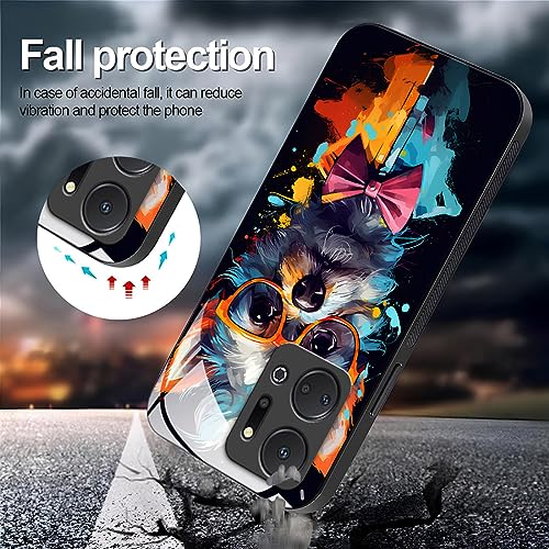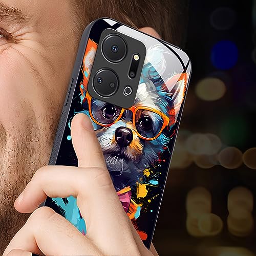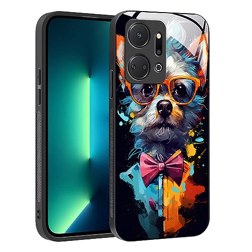 YUXING Cover per Honor X7A - Abstact Art Geometry Pattern Antigraffio Vetro Back Cover, Custodia Antiurto Antiscivolo Sottile (Dog)