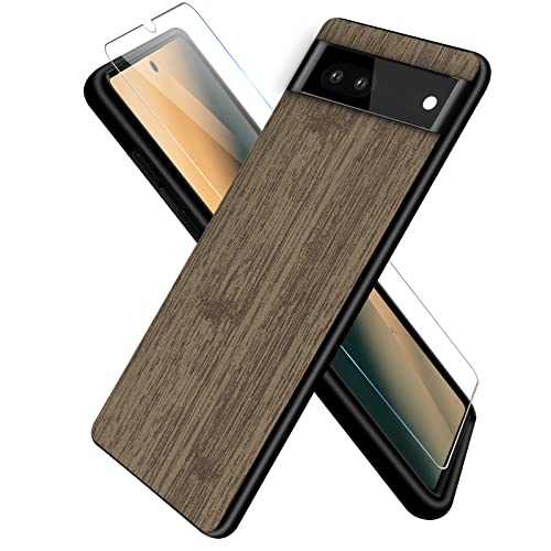 Yvpwt Custodia per Google Pixel 6a, sottile simulazione di legno Slim Fit x 1 pellicola protettiva, antigraffio, antiurto, ricarica senza fili, resistente per Pixel 6a, 6,1 pollici (Pixel 6a, marrone)