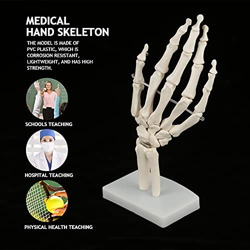 Modello anatomico mano. Questo modello anatomico della mano offre un'ottima vista dello scheletro della mano umana. Il modello è realizzato in plastica PVC, resistente alla corrosione, leggero e ad alta resistenza.