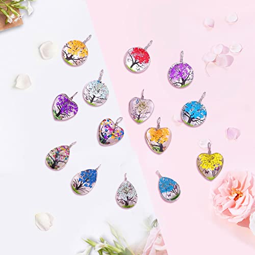 Contenuto della confezione: riceverai 36 ciondoli a forma di albero della vita con fiori secchi a forma di cuore, goccia d'acqua e cerchio, ognuno con 12 ciondoli per l'uso quotidiano.
