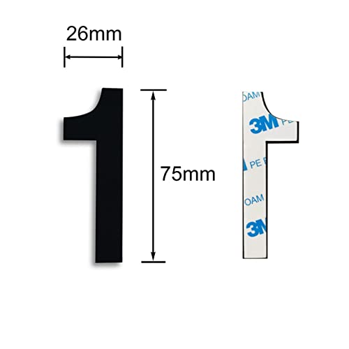 Ywonoby Numeri della cassetta postale 3D 7,5 cm autoadesivi in metallo inox numeri civico adesivi per numeri di porta, numeri di indirizzo, nero (1)