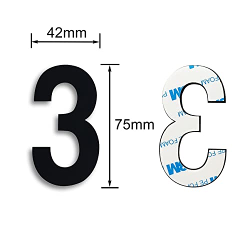 Ywonoby Numeri della cassetta postale 3D 7,5 cm autoadesivi in metallo inox numeri civico adesivi per numeri di porta, numeri di indirizzo, nero (3)
