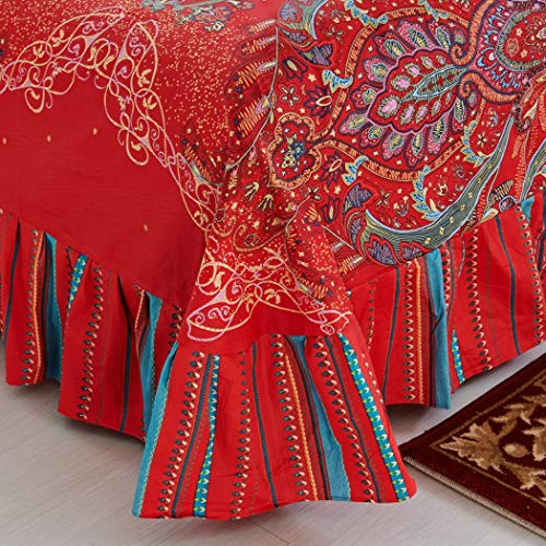 YWYU Rich Red Bedding Set Letto Cover Bedding Cotone Egiziano Letto Set Regina King Size Bed Lace Lenzuolo di Lino Four Seasons (Color: 1, Size: King Size 4pcs)