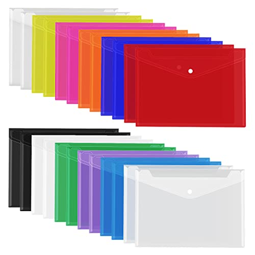 YXHZVON 24 pezzi Portadocumenti Trasparente A4, 12 Colori Portadocumenti Trasparente Busta con Bottone, Cartelline Colore A4 Plastica Portadocumenti per Casa Ufficio Scuola Documenti