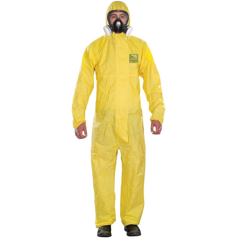 Dettagli tecnici Colore Giallo Contenuto 1 pz. Taglia XXL Tipo prodotto Tuta protettiva Tomaia Polietilene in polipropilene bicomponente/polietilene Vlies AlphaTec ® 2300 PLUS - protezione chimica modello 132, giallo, 2XL Il materiale MICROGARD ® 2300 è costituito da un rivestimento barriera PE (polietilene) e da un rivestimento interno composto da un tessuto di filatura a 2 componenti. La combinazione di questi due elementi, nonostante il suo peso leggero, costituisce un'eccellente protezione barriera contro una vasta gamma di sostanze chimiche pericolose, nonché una protezione relativamente forte e robusta. CUCITURE IN PEDATO E IN PEDATO: Cuciture interne incollate per una maggiore durata e una protezione efficace contro liquidi e particelle. Caratteristiche di serraggio: Cappuccio a 3 pezzi con elastici sul cappuccio. Vita, braccia/gambe con chiusura a strappo frontale a 2 vie con copertura richiudibile incl. Passanti per le dita. Testo tradotto automaticamente Caratteristiche