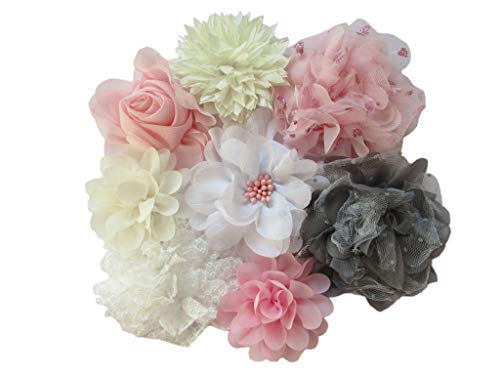 Yycraft, confezione da 20 pezzi di fiori di chiffon, 5 cm, con strass e perle, per progetti creativi, 3"-4.5"white/Ivory/Pink/Grey Mix, 3"-4.5"