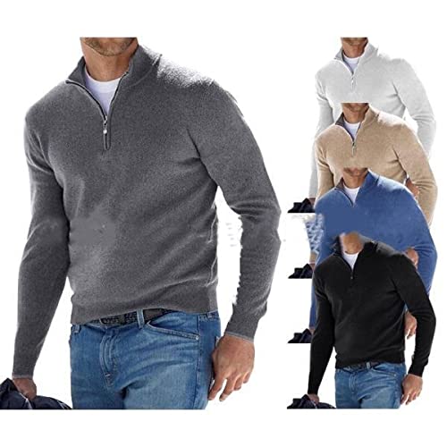 YYDS Maglione Basic da Uomo in Cashmere con Cerniera, Maglione a Polo con Collo a Lupetto con Cerniera, Maglione Casual a Maniche Lunghe, Pullover in Lana Calda e Spessa (XL,Rosa)