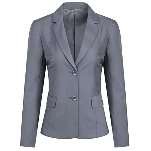YYNUDA Blazer - Giacca da donna a maniche lunghe, chic, con tinta unita, con due bottoni, grigio 2, XXL