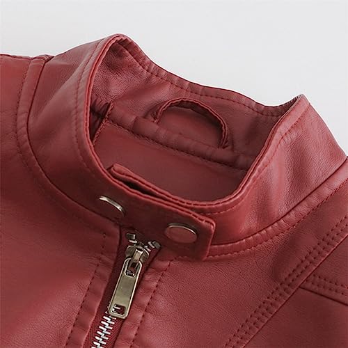 YYNUDA Elegante giacca da donna in finta pelle con cerniera, corta, in poliuretano, da motociclista, Rosso, 3XL